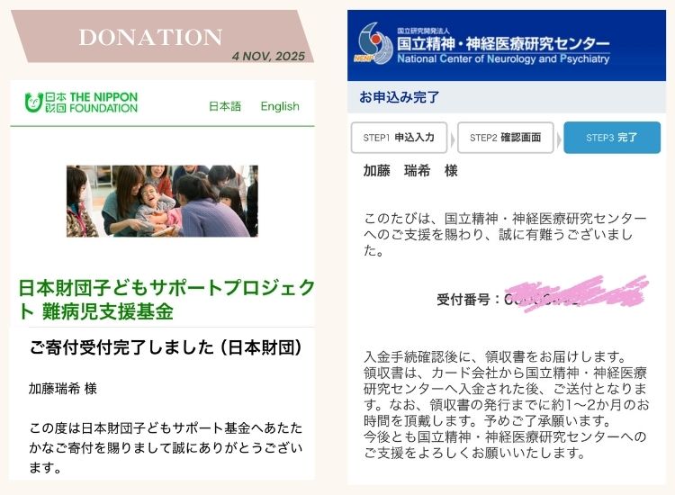 今年も下記の2つの団体へ寄付しました。